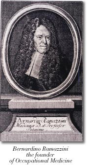 Bernardino Ramazzini (1633–1714), professeur de médecine à Padoue, fut un autre précurseur dans le domaine des accidents du travail et de la «pathologie professionnelle». Il précisa certaines mesures d'hygiène et de sécurité et essaya de perfectionner les conditions de travail et en se déplaçant sur les lieux de travail..
