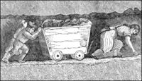Les mines de charbon sont organisées par étages à partir desquels on exploite les couches. Chaque mineur creuse une couche pour en extraire le charbon qu'on charge ensuite dans des berlines. Ce travail est particulièrement complexe car il faut creuser de manière à ne pas faire effondrer la galerie, en plus de cela, il y règne une chaleur étouffante, car il n'y a presque pas d'air qui circule. L'unique moyen trouvé pour créer une ventilation a été de construire au minimum deux puits. Le premier permet de la montée et la descente des mineurs et la montée du charbon. L'autre sert uniquement à la ventilation.
